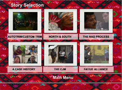 | The Story Selection Menu gives you access to six shorter alternate stories which use selected and rearranged chapters of the documentary to create shorter narratives with differing foci. When you select and play a story, the related chapters are automatically shown in the new sequence. This facilitates use in classrooms and by discussion groups with limited time frames. The stories and their lengths are described below. | |||||||||||||||