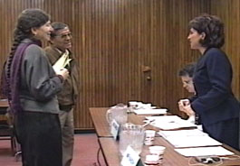 We shift to the Han Young workers in Tijuana who feel excluded from the followup to their NAO hearings on similar issues. They see the company, the Maquiladora Association, local and state government, the official union and the labor board all lined up to prevent them from organizing independently. We end with the hearings on the Auto Trim/Custom Trim complaint. This is the first complaint to be based solely on violations of worker's health and safety. Once again workers feel that the NAO, though finding in their favor, lacks the power to defend them. |